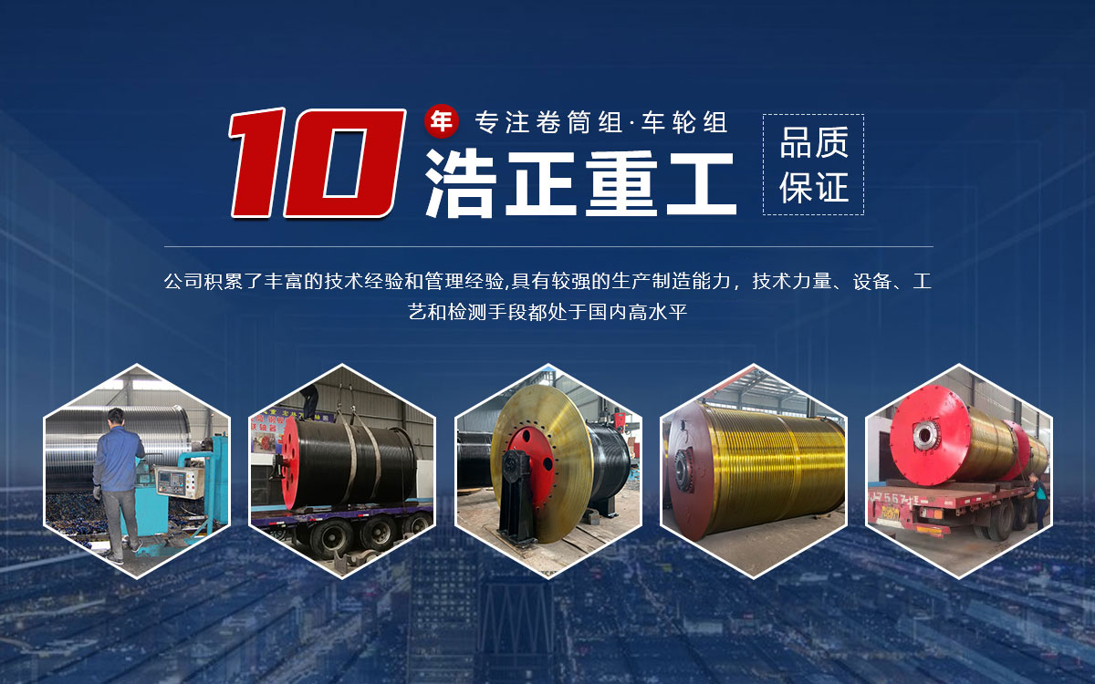 起重機卷筒組廠家用來卷繞、儲放鋼絲繩,使炯絲繩進行旋轉與宜線運動的相互轉換。根據傳力和支承方式不同,卷簡組的結構型式可分為一端支承和兩端支承兩種類型。  1一端支承、一端與減速器相連:  1)帶齒輪連接盤的卷筒組  帶齒輪連接盤的卷筒組在起重機中應用普遍。卷簡的一端通過帶內齒的連接盤與減速器齒輪式出軸軸端相連,卷簡的長軸軸端通過調心式滾動軸承支承在減速器出軸軸端內孔上。  這種結構分組性好.工作可靠,對軸線偏斜典有一定補償功能,但對加工精度要求較高,嘗筒組套人減速器齒形軸端時的安裝比較困難。  2)帶滾珠或鼓形滾柱連接盤的卷簡組  卷簡的一端通過滾珠或鼓形滾柱連接盤與減速器的圓柱形(或花鍵)出軸相連,沿圓周均布的滾珠或滾柱嵌在連接盤內外圈之間由成對半圓形凹槽所形成的圓孔內,傳遞轉矩并起到徑向支承和軸線偏斜補償作用。  這種結構也采用了短軸,工作可靠,安裝方便,但對連接盤的加工精度和材質、熱處理有一定要求。  3)帶剛性連接法蘭盤的卷簡組  這種卷筒組采用法蘭盤與減速器圓柱形出軸剛性連接。減速器底座通過鋼球或圓柱銷與機架鉸接.以消除卷筒組、機架受載變形對剛性結合部位的不利影響.卷筒的另一端除了采用定軸式短軸以外,還可以采用過盈配合的轉軸式短軸或軸與法蘭整體鑄造的轉軸式結構。這種卷筒組的優點是構造簡單,調整與安裝方便。